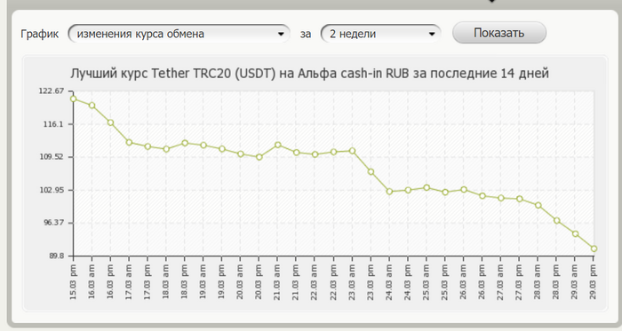 Смотрим предложения по паре прям на рандомной меняле (ничего оптимизировать не хотим, сложно, мы воробушки) : USDT в рубли
