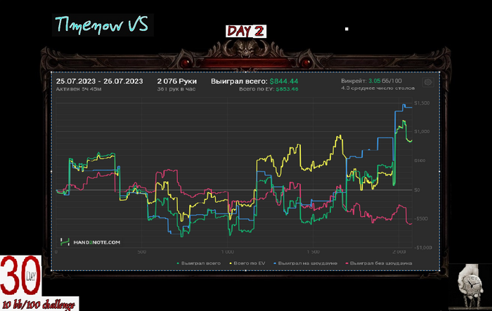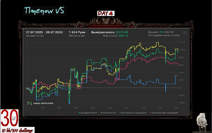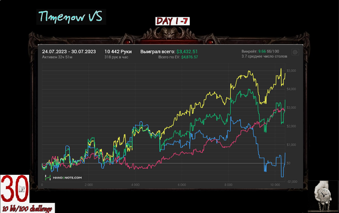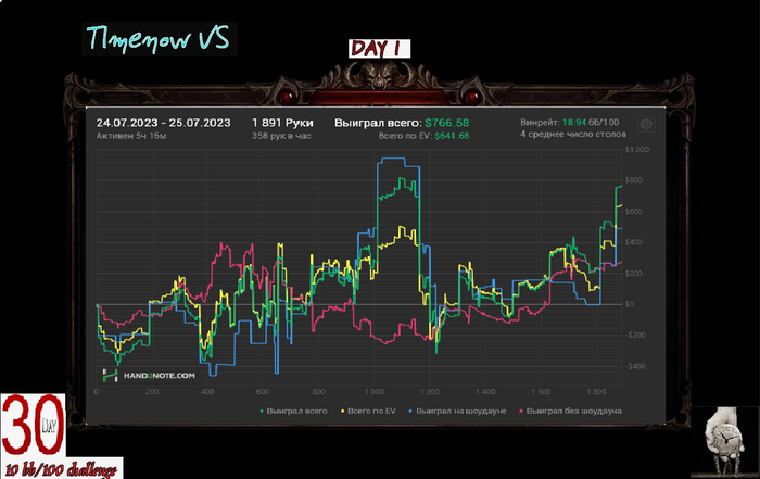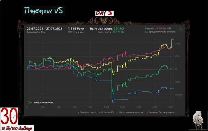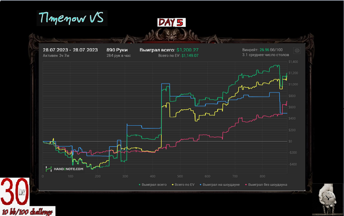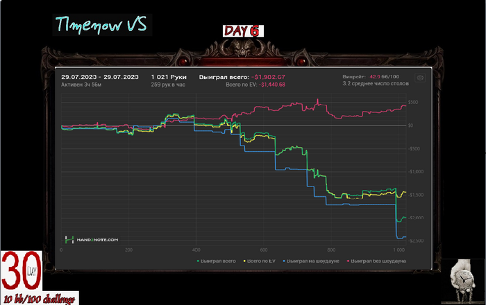 Если честно ожидал минус, хрен знает как вообще в + закончил. Раза 3-4 в тузы упоролся с королями, играл в состоянии плохом. Короче чудо.