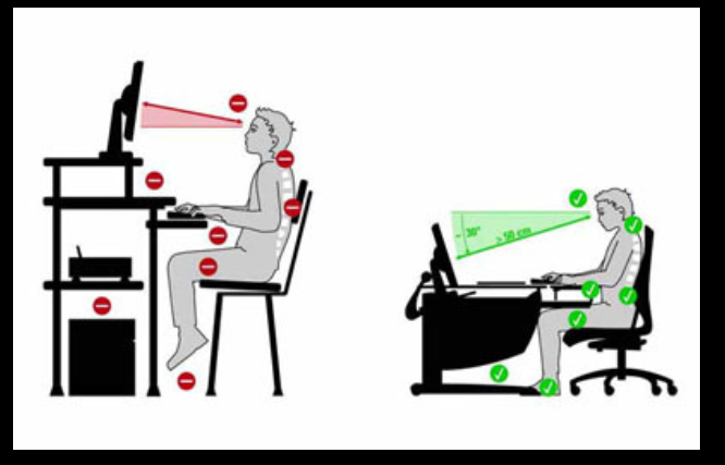 Мне невролог говорил, что шею запрокидывать это самое плохое и поэтому на монитор надо смотреть немного сверху вниз. Типа как на картинке.