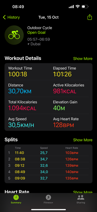Еще ни разу средняя скорость тренировки не было больше 30 км/ч. Это с учетом первых и последних медленных километров, когда только выезжаем на трек.