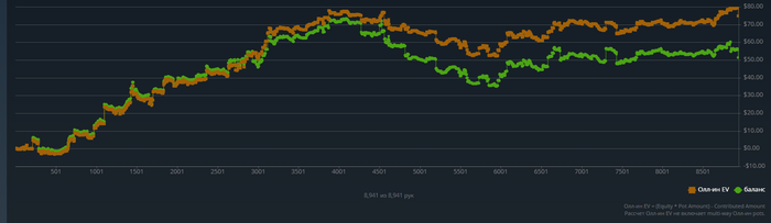 Ага. Красиво рисует графики покеркрафт. А по факту не +230$, а в лучшем случае +100 из-за конского рейка
