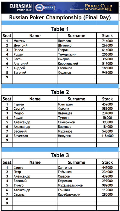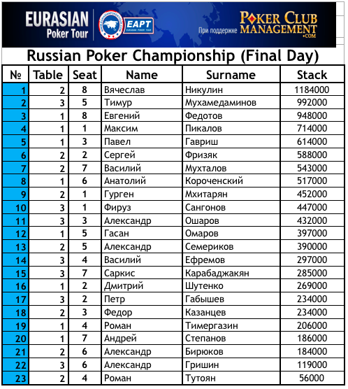 На сегодня — последний уровень в Russian Poker Championship. За столами 28 игроков.