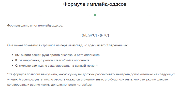 Щас у Пекаря на сайте нашел статью "Как легко рассчитать имплайд-оддсы в покере"