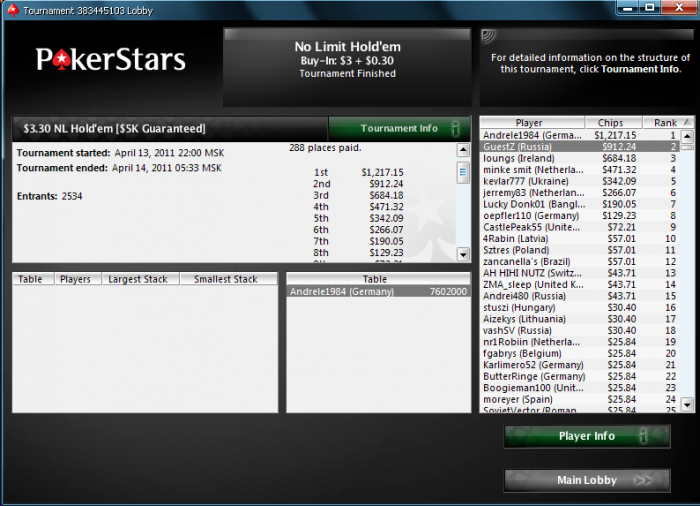 Да уж ну и ночка выдалась... Сижу себе спокойно тащу турик на ФТП. Где-то в ТОП 100 зашел ненароком на GT а тут оказывается черный лебедь хозяйничает. В общем приготовился уже по фишкам делить и надеяться на доброе утро)) Всю дорогу до финалки мысли про черную пятницу реально напрягали. На финалке стало совсем худо: сначала вырубился ХМ, а потом отключили и картон... В итоге конечно обидно но финалка шла очень тяжело.