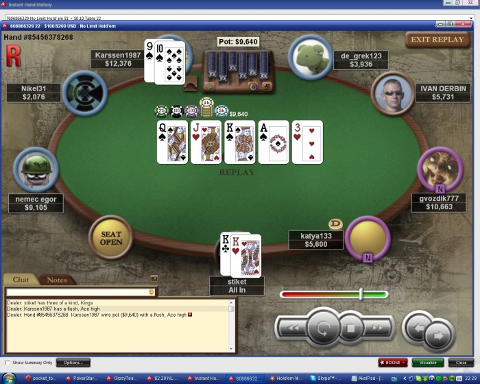 Poker Stars $1.00+$0.10 No Limit Hold'em Tournament - t25/t50 Blinds - 8 players - View hand 1873389