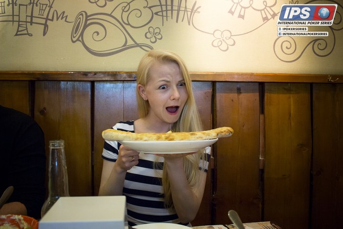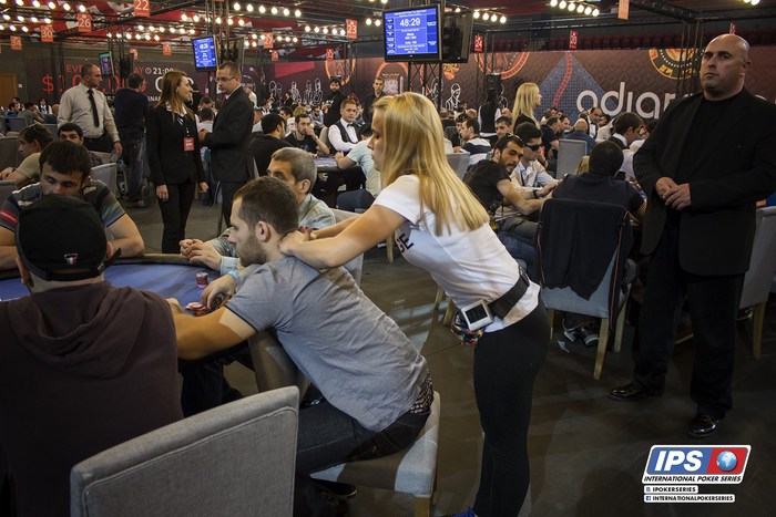 При обходе зала случайно заметили очаровательную девушку из Армении. Как оказалось, она первый раз в жизни видит покер, играет, разумеется, тоже в первый раз. Сейчас пробует свои силы в сателлиты на Main Event.