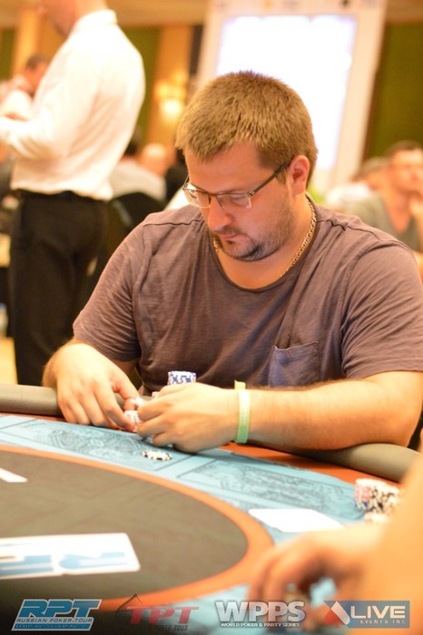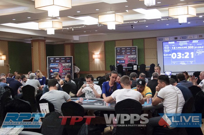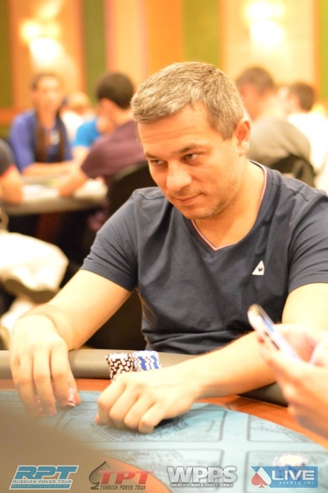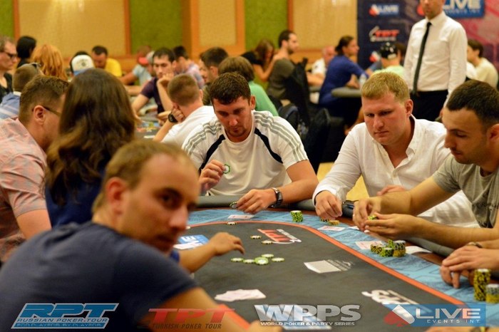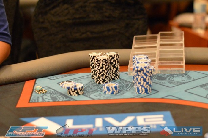 В игре - 75\195 Средний стек - 78K, блайнды 800\1600, ante - 200.