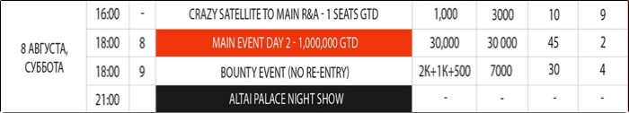 В 16:00 - крэйзи-сателлит на главный турнир SPT. Вступительный взнос - 1,000 рублей. Стартовый стек - 3,000 фишек. Уровни по 10 минут. Поздняя регистрация и ребай - в течение первых девяти уровней. Последняя возможность попасть главный турнир через "боковую дверь". Ультракороткие стеки и стремительно сменяющиеся уровни предполагают сумасшедший экшн.