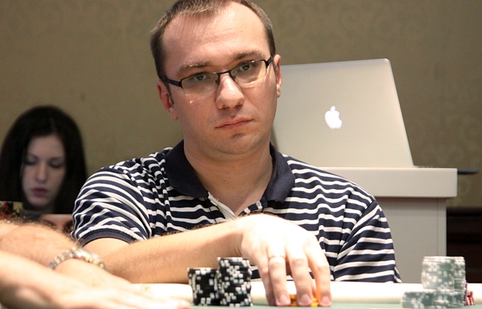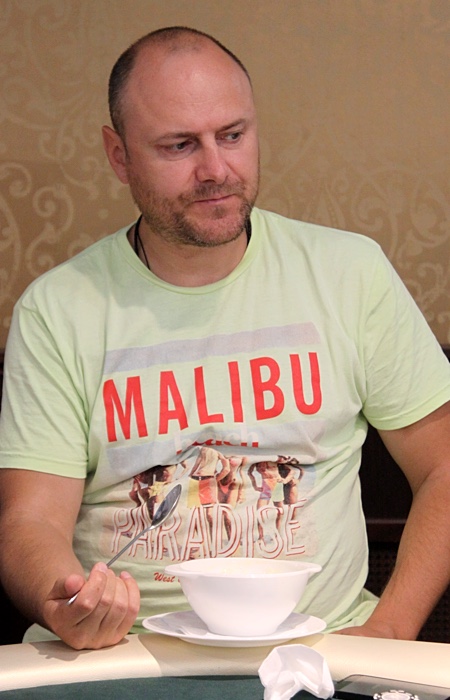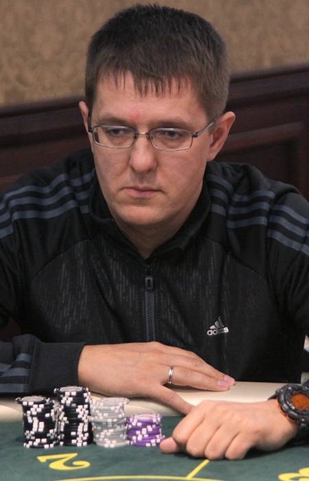 Дмитрий прибыл на серию в самый последний момент, вчера быстро вылетев от рук Юрия М., долго сомневался, стоит ли садиться в игру во второй день. Все-таки сел, за несколько минут до конца ребайного периода, - и сумел набить хороший стек к финальному столу, но... против лома нет приема.