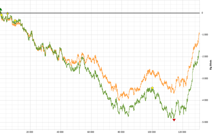 На дне залива бра оставалось 75 ддолларов, а график скатился к минус 47 стеков Играл даже нл2. Последние несколько дней немного апнуло. График интересней смотреть в бб