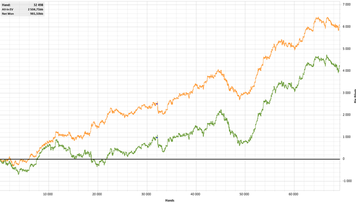 Начало месяца. Снова унылое говно (раздавали, и я говно и мой стиль игры говно) Залил дохуя байинов, начал тильтовать, чуть было не решил забросить покер к чертям. Но тут случайно обнаружил свою старую базу за середину 2015 - на пс в нормальный плюс. Решил разобрать и сравнить как изменилась моя игра
