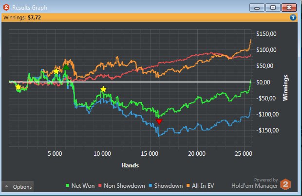 Отсюда следует цель номер 2. Закрепиться на нл25, который я уже начал штурмовать Попробовал мини сессию на нл25 рег столы. Поле слабое и свое преимущество я вижу. Думаю 4 бб / 100 я здесь имею, если каким-то магическим образом взять себя в руки и не психовать и тильтовать.