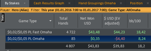 BB: $5.67 - VPIP: 22, PFR: 14, 3B: 3, AF: 3,8, Hands: 112