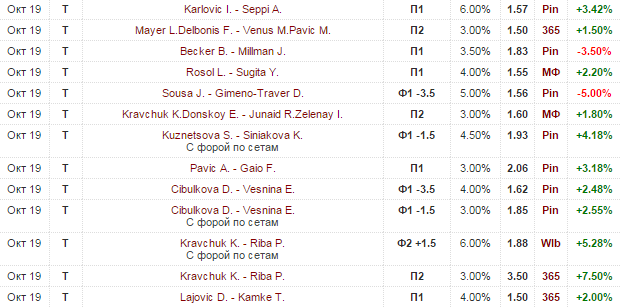 15:00 Бердых Т. - Симон Ж. 2-0 - 2,65 6-3 6-3 +++ (+1.65%)