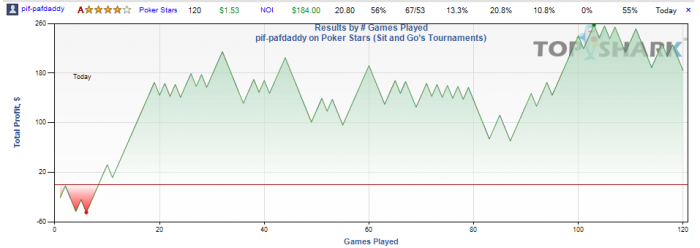 сегодня в снг решил сделать перерыв, так как вроде понедельник и слабых игроков не так много как мне бы хотелось того. вгрузился в 12.5кг за 22. закончил 70. +56 постфлоп там почти не играл. действовал 3бэтами и рестилами, поэтому каких-либо крутых раздач небыло