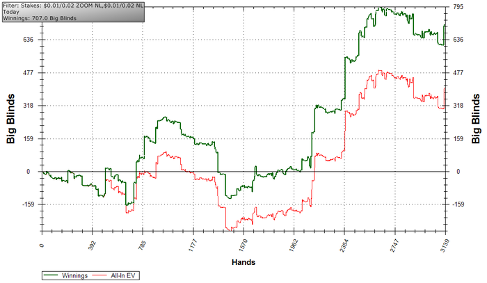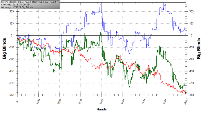 Помимо того, что ошибок много, еще и сдавали норм руки, которые все время попадали под доминацию. Большая агрессия порождает большую дисперсию. Большая дисперсия порождает тильт Кроме всего, явно что то делаю не так, потому что не чувствую уверености как ето было раньше. Вопрос что не так и как ето исправить...