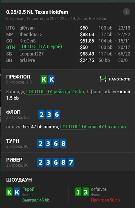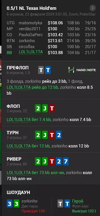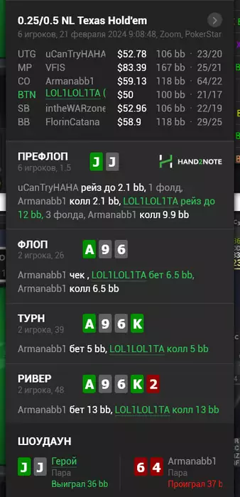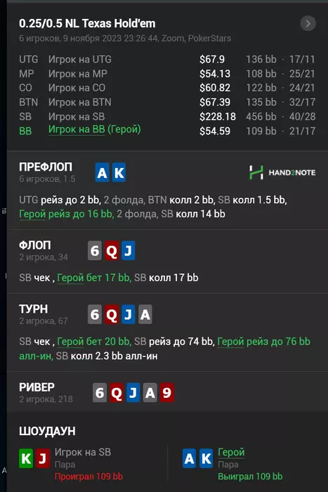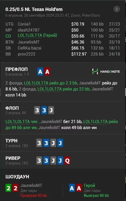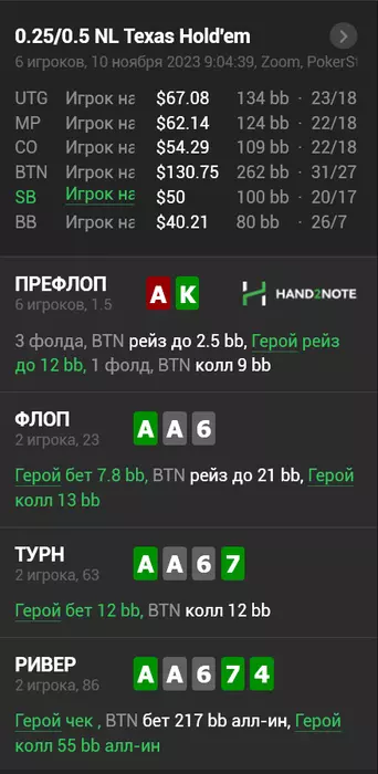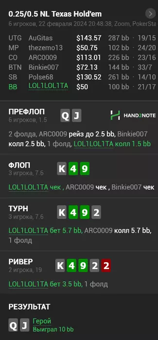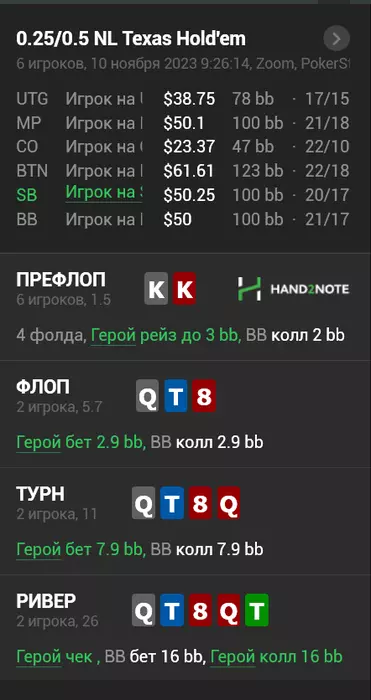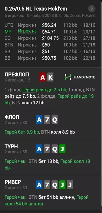 В остальном - продолжаем катать, хочется на этой неделе показать максимально хорошую игру, для себя в первую очередь. Вас как читателей блога буду держать в курсе, а пока - небольшая подборка позитивных раздач с этой недели :) Любители в зуме благо что тоже водятся, выигранные раздачи с ними я обычно собираю 💪