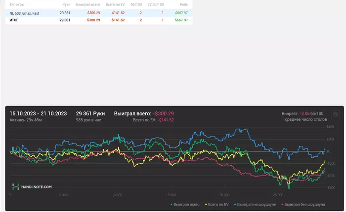 Традиционный краткий отчет за неделю: сыграно29 361 рук, с результатом -327$