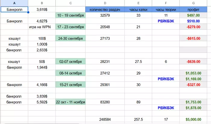 Банкролл на данный момент составляет около 5200$, кэшаут на жизнь был сделан и надеюсь до конца осени нового не предвидится :) На самом деле, назрел большой запрос чтобы апнуть скилл, ведь в перспективе хочется катать zoom100, но сейчас ощущение такое что туда я точно не гожусь. Проблема в том, что большинство тренеров на GT специализируются на обычных столах, и такие тренировки мне не подходят из-за разной специфики. В общем, надеюсь что-то в этой области срастется, если вам есть что подсказать или кого посоветовать - буду премного благодарен 😏
