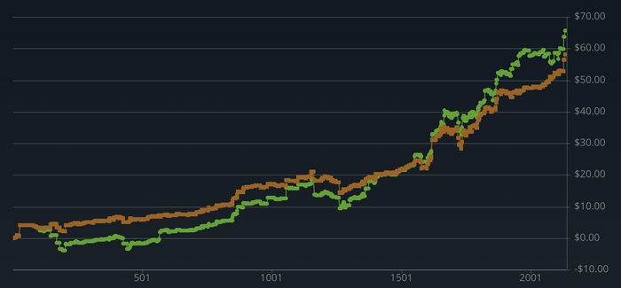 Однако, в определенный момент (1) попытка увеличить теоретическое ЕВ не обязательно линейно отразится на реальном ЕВ. Вы можете достигнуть точки, в которой внедрили уже так много приемов/улучшений стратегии, что отдача от этого перестанет быть линейной.