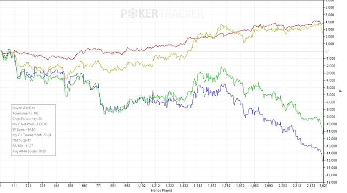 deLimaR9, Спасибо, ты прав. Я так психую, из-за того, что очень нацелен сделать норм плюс до 10го февраля, потому что я 11го надолго уеду и вернусь только 29го. Так что февраль почти не буду катать. И как раз на поездку я и вывел основную часть фин подушки. Она как раз и была на 2 месяца рассчитана, но больше половины я вывел, еще саданул нормально, и запаса почти нет. То есть как нет, для игры на 15ках у меня более чем комфортный ролл сейчас, но то, что если я не выйду в + до 10го и тогда в марте могут быть проблемы, если будут также ушатывать - давит. Вся жесть началась у меня с неудачного выстрела на 30ки, из-за них то у меня общий график и выходит с недобором:
