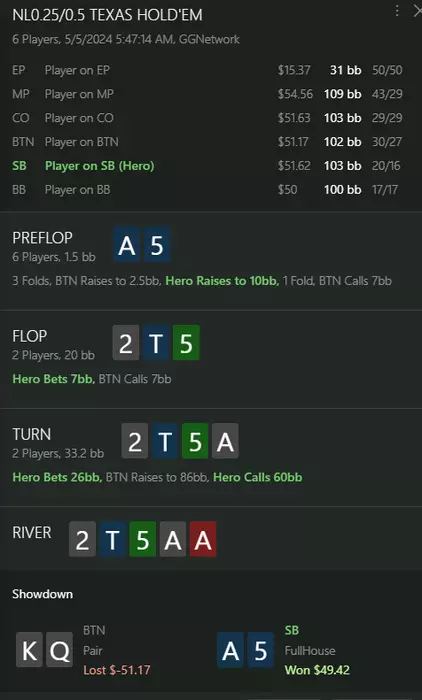 К чему я пришёл за 51 день? В первую очередь к тому, что вступил в школу покера. С 1-го раза меня не приняли, ибо график был - так себе, я очень старался и у меня получилось. Я стал обучаться, с 18 апреля я уже более менее понимал что и зачем я делаю, потом как я считаю меня накрыл стрик -, вопросы на работе, по дому, с моей любимой девушкой по поводу финансов и меня накрыл тильт, хоть и сыграл мне на руку, однако такое недопустимо. Стал разбираться в диапах +-, Сбет на флопе "спасибо ШП". Щас есть БР для игры на нл25. Думаю - лучший повод чтоб показать, что не только удача, но и знания идут со мной!