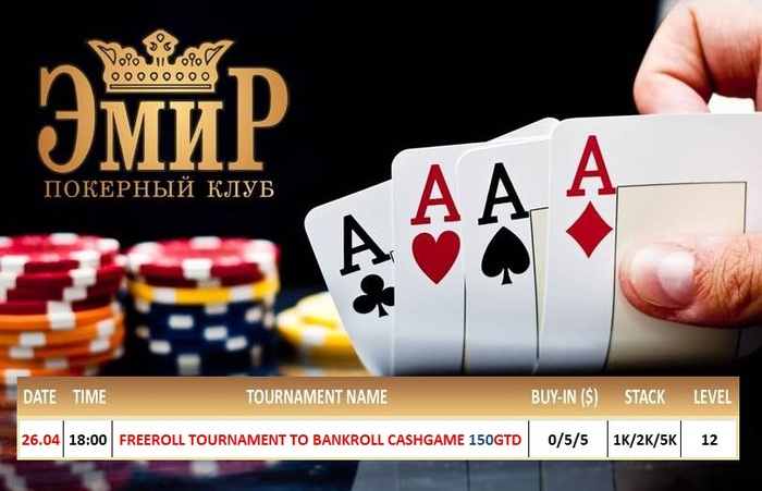 Друзья, приглашаем Вас в покерный клуб "Эмир"! Сегодня, у нас в 18:00 Турнир - FreeRoll R&A 0/5, в котором гарантированы два призовых места по 75 у.е., для увеличения Вашего банкролла на кэш-игру. Кэш-игра начинается в 20:00.