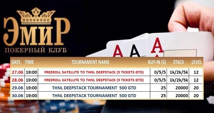 Друзья, приглашаем Вас в покерный клуб "Эмир", где начиная с сегодняшнего дня и по четверг пройдут турниры!
