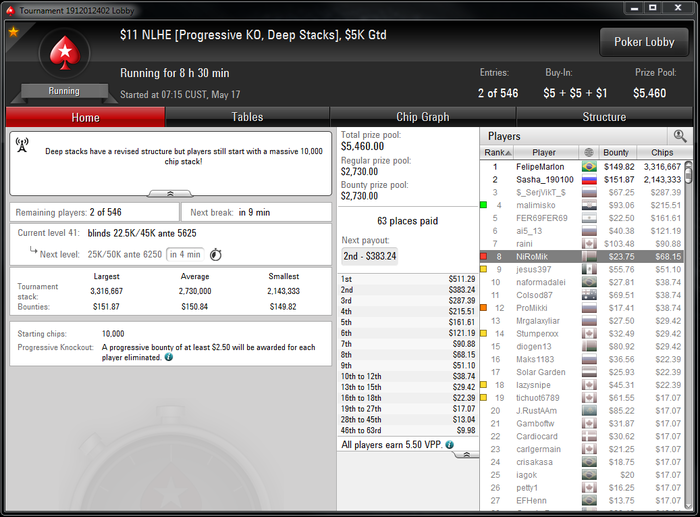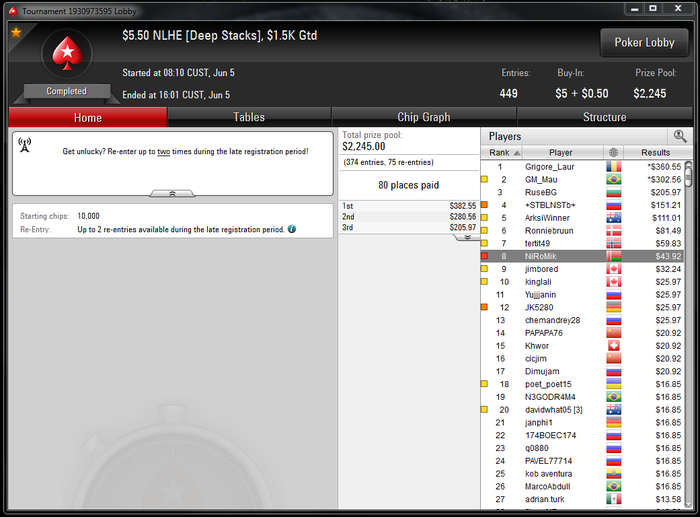 Ну и на 888 в турике за 3,3$ обидно ушатали, был чиплидером, но как обычно удвоил всех коротышей и досвидули. На восьмерках вообще какое-то проклятие на финалках)