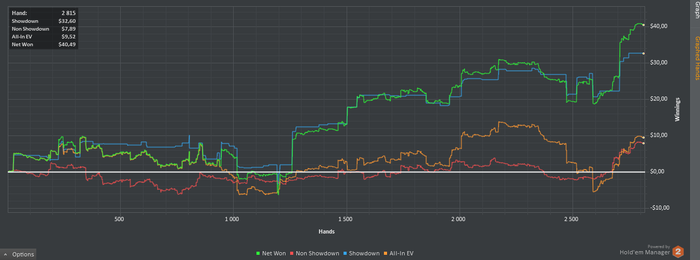 (NL5, 6MAX, начинал с 1 стола в конце играл 6, 5 мини сессий по 60 минут в день)