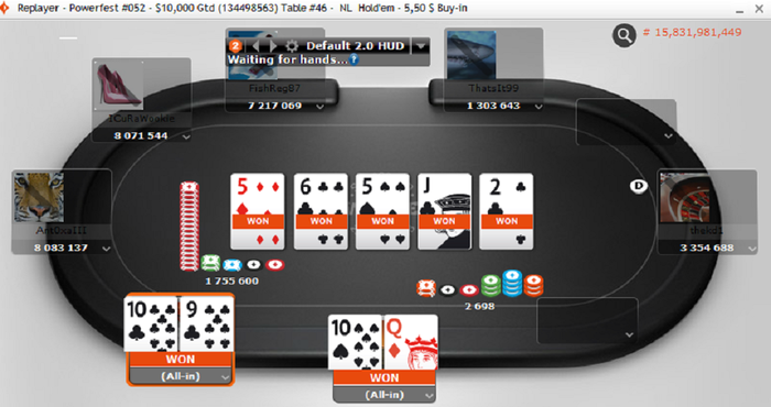 Новый день, новый дипран, сегодня на Пати задипранил по 5.5 Powerfest 10K+ Но в ТОП20, вот такая раздача с СБ в ББ Q10о против 109s оппу ложат ранер-ранер флаш(((