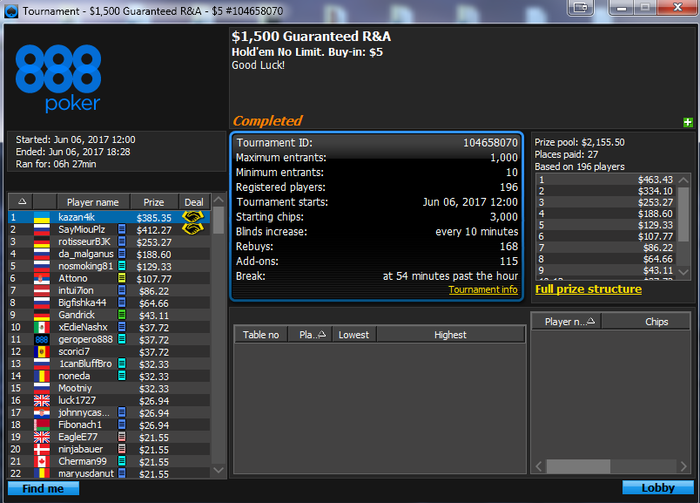 На начало Сыграно 11 сессий. 215 турниров.