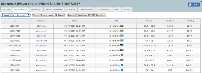 Прошедшую неделю 12-18.06.2017 отыграл как и хотел 5 дней. 1я и последняя сессии были по качеству не очень. В 1й очень отвлекался, в один момент обнаружил что смотрю видео на ютубе с Андреем Губиным