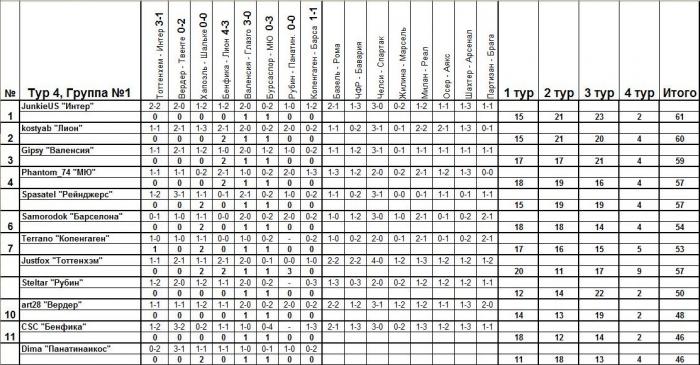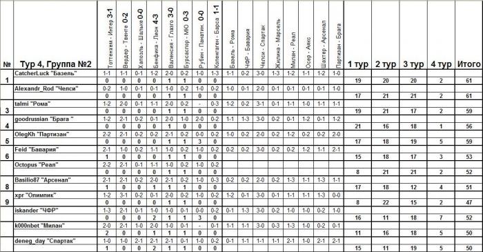 Тема письма: Ник(OlegKh)--Группа(2) - Команда(Партизан)--ТУР(4)В самом письме вы указываете ТОЛЬКО прогнозы