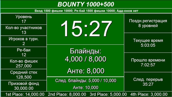Турнир Turbo Deep Stack собрал 28 входов, в итоге оказался оверлейным на 8000