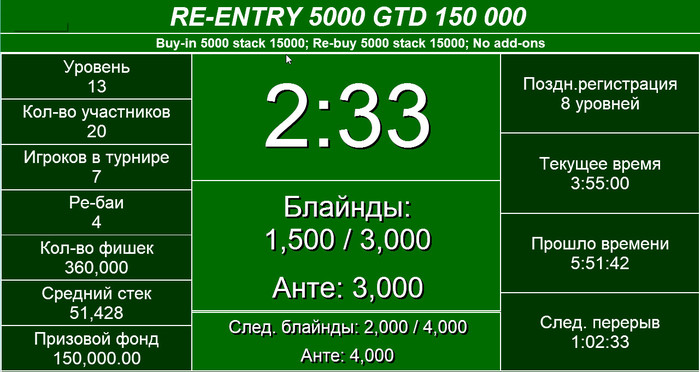Играли кеш 25/50. В розыгрыше 10000 выиграл новый гость нашего клуба Ерошенко Алексей, поздравляем!