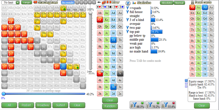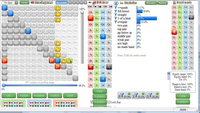 Соотношение игра/теория буду строить 50/50, играю я мало (~3-4 часа), значит буду 2ч/2ч сначала игры, потом разбора или работы с ФЗ. Подготовил себе в екселе таблицу с бордами, от неё буду плясать, доделывать работу прошлую по ранаутам и просадке в эквити. Эксплойт довольно мощный инструмент в покере. На каждую хуяту вытворенную регом - нотс и долбить его пока не перестанет творить херь. После просмотра ВОДа именно по работе с софтом, снова появился запал на теорию.