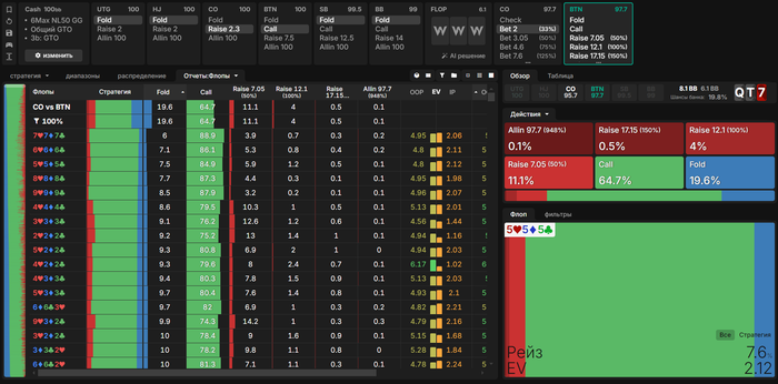 Разбираю раздачку в GTO Wizard и понимаю, что я ничего не понимаю. И не знаю. И мне это нравится. Что я наконец-то до этого дошёл. Мне кажется, это зелёный флажок роста.
