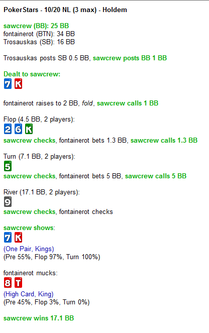 Немного оговорюсь - "циркачи" это, конечно, громко сказано. Скорее лучше их называть странными/слабыми регами, стабильно, пару раз в неделю допускающими очень жесткие ошибки. Ошибки против меня, естественно, других я не вижу, и в теории если они все другие турниры играют идеально, то они и сильными могут оказаться)