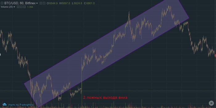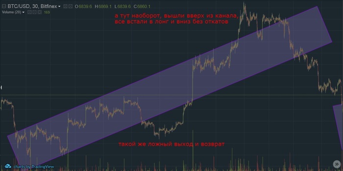 Я себе движение битка вижу и рисую каждый раз вот так, вверх и вниз мы ходим в канале, обязательно выпадаем из него, чтоб собрать стоп ордера. Помните я писал что жду пролив и красные дни? вот этот ложный выход я и ожидал, он на 1 скрине, на 2 и 3 просто для примера взял прошлые походы вверх. (это для тех, кто говорит что у меня апчик. только расчет, наблюдения, поиск закономерностей на рынке)