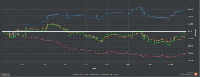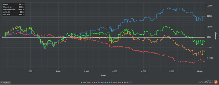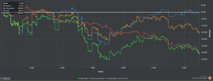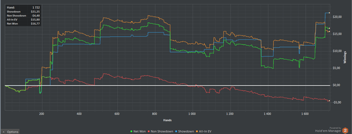 Немного хочу подвести итоги моего прогресса в покере и понять куда двигаться дальше. Примерно год назад я начал регулярно играть в покер. 1 год достаточно приличная дистанция, но результата все нет и нет, я как та старуха из сказки, которая сидит в конце у разбитого корыта, так и я, откуда начинал, туда и пришел. НЛ2 длинной в год, звучит как приговор.
