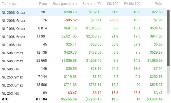 3. ВР больше 10бб/100 на всех играемых лимитах