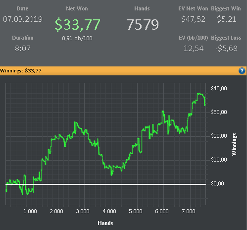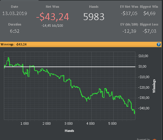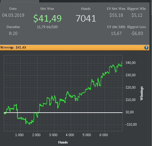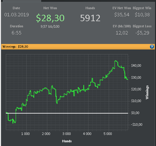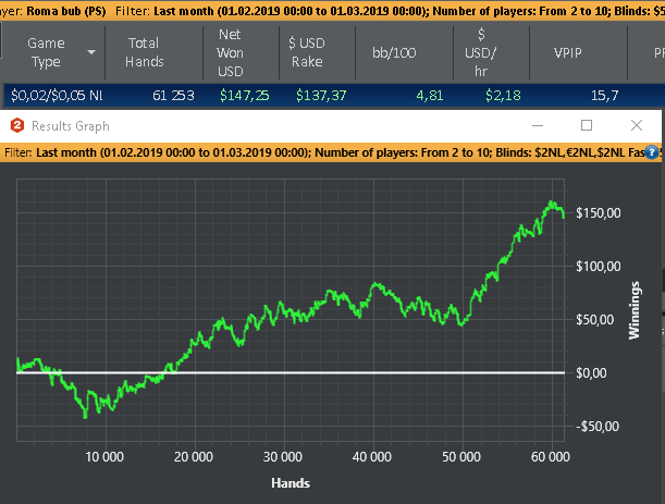 Как то у меня не получается сидеть на 6 макс,вроде как бы и настроил себя, но хватает меня там на 2-3 дня .Так же с теми столами то играю 12 потом бац и уже 20 только что на нл5 сижу на 12 это норма для меня. У меня такая проблема, видимо без этого не могу прыгать с Фр на 6 макс когда игра не идет либо когда бабосики нужны играю столов 18-20.Хорошо что на СНГ или Спины не пошел,мысль такая меня посещала )) В общем пока все же решил остановится на нл5 Фр, надеюсь надолго.Одно меня радует что последние 5 дней сижу над теорией 1,5-2 часа ооочень пошло на пользу мне. График нл5 за Февраль