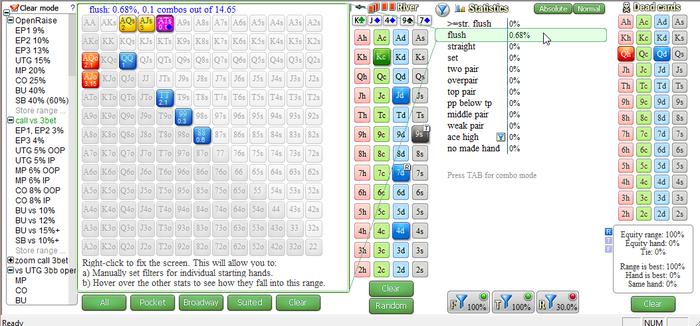 и сейчас выберу недоехавшие дрова, с чем он в теории может пушить в блеф 80% эквити