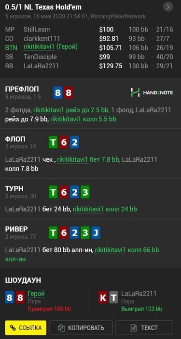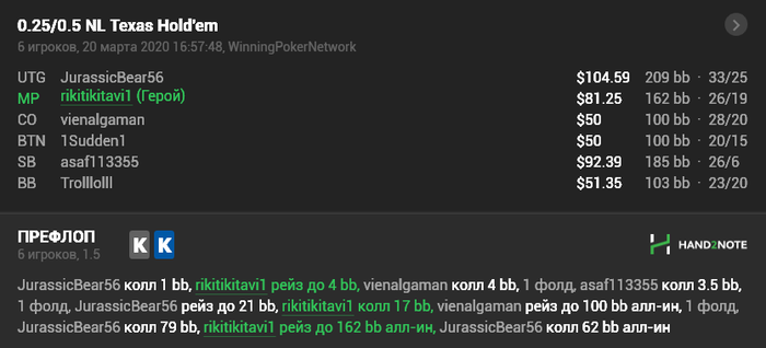 Вот эту раздачу против рега я вообще не понял. То что я в тильте зателефонился - это забейте, но я это хоть как-то с натяжкой могу обосновать, но его ход мысли вообще не ясен. Такую линию от рега впервые вижу.