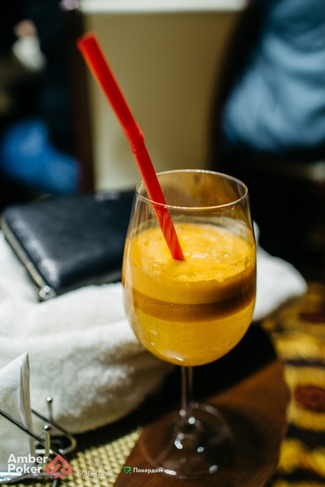А пока Братаев пребывал в раздумиях Медюхе принесли сок, и Агафонов решил заказать такой же. Евгений не упустил возможность предложить пари, кто кому оплачивает великолепный напиток. Поспорили на то, каким будет следующий флоп - Агафонов взял красный, Медюха соответственно за чёрный.