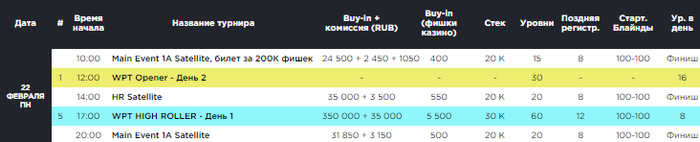 Завтра мы опять без кубковых ивентов. Помимо Opener, в 17:00 стартует Хайроллер, а также в течение дня пройдут два сателлита к первому дню Главного события.