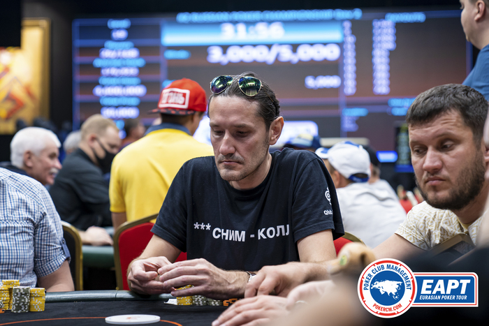 На тёрне Ким вновь чекнул, Алексеев вновь поставил, на сей раз 5 000. Виктор Ярилов ответил рейзом до 10 000. Даниилу пришлось сдаться, а Алексей уравнял.