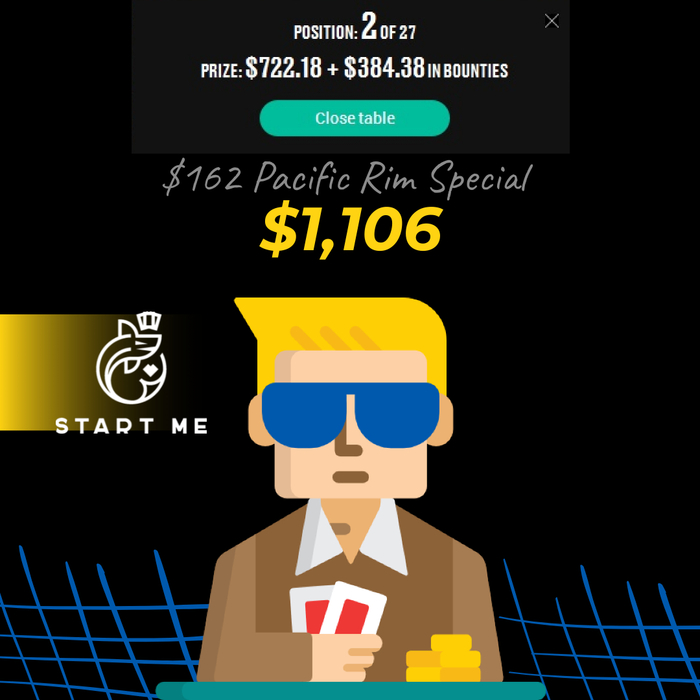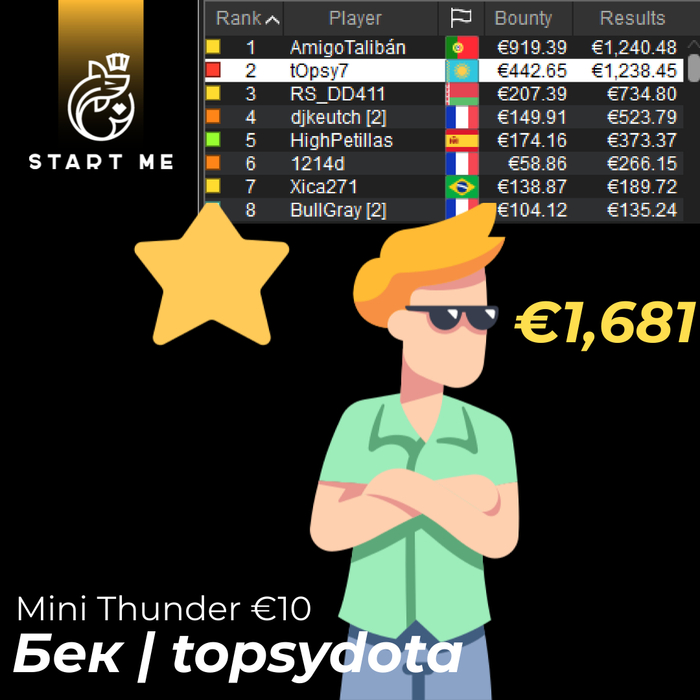 Дмитрий Tivun249 так же был очень близок к вершине. В любом случае, 🥈Top-2 и внушительная награда за хорошую игру - $1516 на Bounty Builder $16.50 [Saturday Special], $25K Gtd. Турнир проходил на PokerStars.