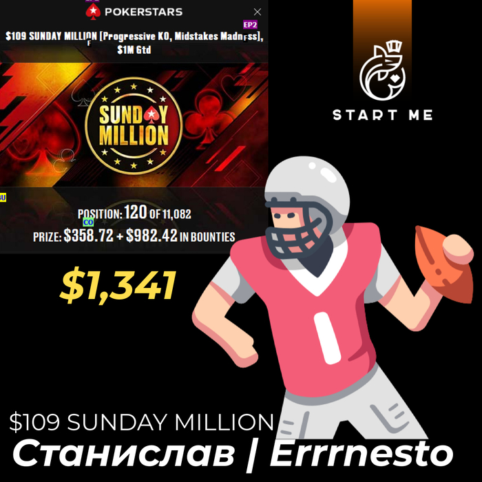 На этой неделе Алексей порадовал тремя крупными заносами и заслуженно берет топ-1🥇 этой недели! $22 Mini Sunday Million, 125K Gtd - Progressive KO - 2-Day Event, 13-е место и $346.38 + $197.41 на PokerStars. Вторым стал WSOP Online: $54 Bounty Hunters Daily Deepstack 10-е место, 1,198.15 + $1,303.23 и 11 нокаутов🥊 на GG. И WSOP Online: $54 Bounty Hunters Daily Deepstack, топ-10 1,198.15 + $1,303.23, 11 нокаутов🥊 на том же GG. Общий банк $4865.💰 Поздравляем Алексея!